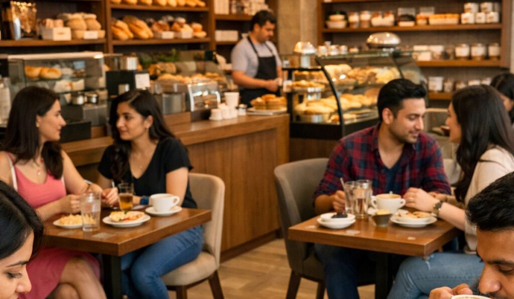 You can find mithai like kaju katli alongside burgers, pasta, waffles, and gourmet cakes. It is perfect for people who want both Indian and international flavors in one place.